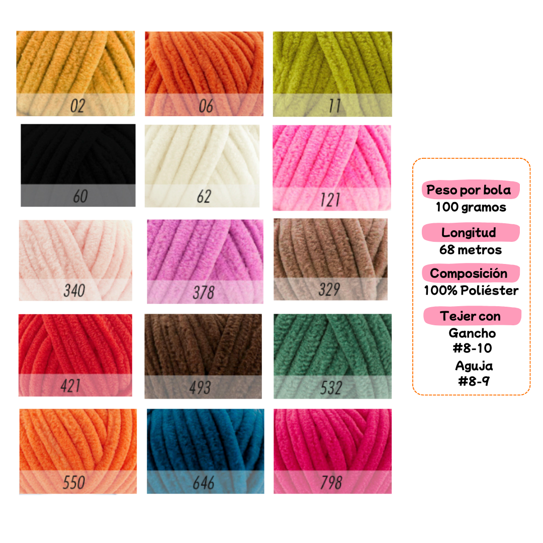 Recomendado tejer con: Gancho #8, agujas #8, dedos